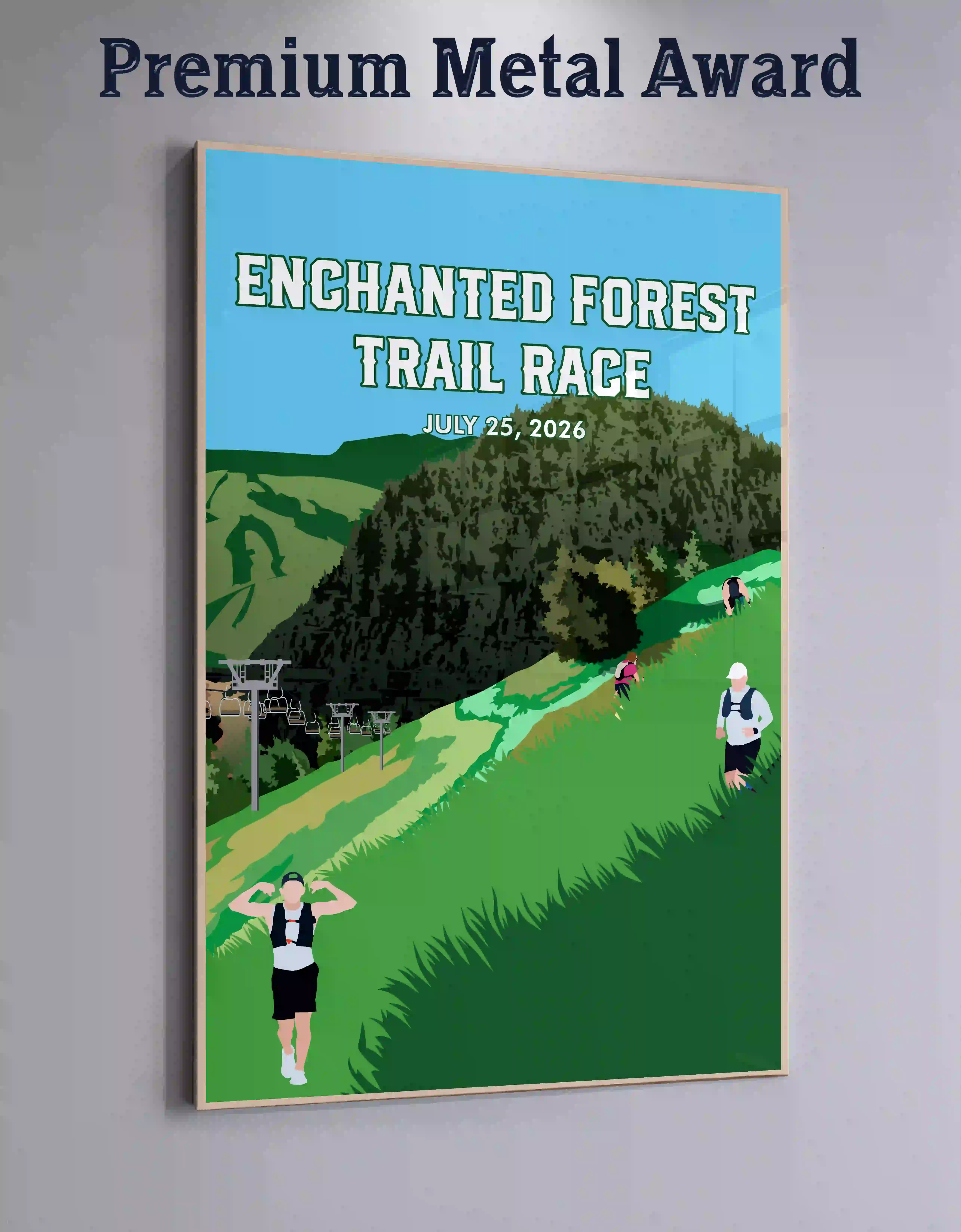 The 2026 Enchanted Forest design started with one rugged idea: capturing the beautiful but brutal terrain of St. George. We highlighted the sharp contrast of Utah’s jagged rock technicality against the soft, sweeping backdrop of the snow-dusted Pine Valley Mountains. Every detail is illustrated to showcase the legendary grit required to conquer the desert’s most punishing obstacles, using a palette of sun-baked earth and cool alpine shadows.