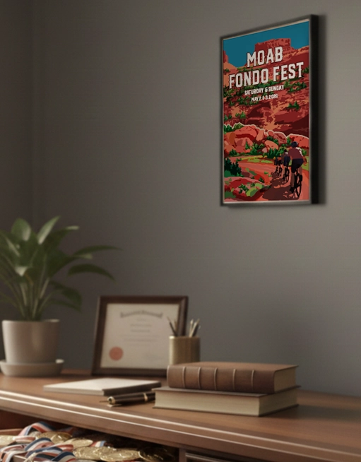 The 2026 Moab Fondo Fest design started with one expansive idea: the ultimate choice between red-rock grit and alpine glory. We captured the legendary contrast of the snow-capped La Sal Mountains against the deep sandstone corridors of the Colorado River. Every detail is illustrated to tell the story of a weekend bridging two worlds, using vibrant desert golds to highlight the endurance and camaraderie of this iconic Moab epic.